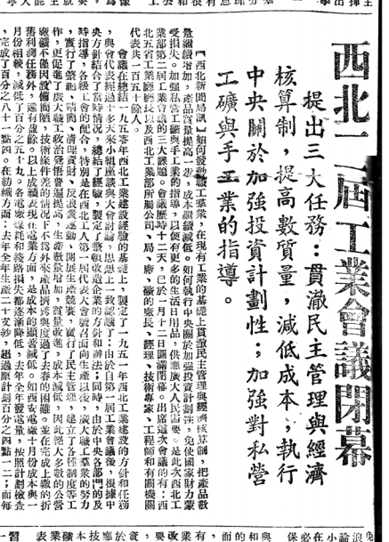 《群众日报》1951年1月关于西北工业会议的报道